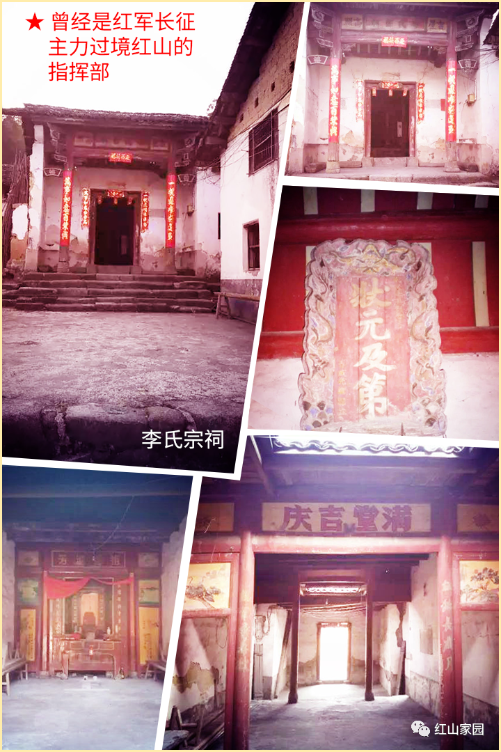 ★李氏宗祠曾是红军长征主力过境红山的指挥部。 公元1786年,台湾彰化县林爽文聚众联结天地会,攻破彰化城,接连攻下几个都郡,声势浩大。清王朝时期,李威光带领漳泉义勇军渡海征剿,统领将士驰骋沙场,奋勇杀敌,驱压叛军,不到一年时间就平定叛乱。因此,李威光升任台湾安平协水帅副将,后调任闽安水师副将,福建南澳总兵。期间又因他对闽、澳二省沿海作出了重大贡献,皇帝把他调到京城,提为御前侍卫,再赐他二块匾额:“御前侍卫”和“状元及第”,瞬时成了皇帝身边的红人。 此事不久后的一天,新田李氏家族因与城口内洞发生了一场土地矛盾纠纷案件,告到了京城。公堂判官拍案严辞:“大胆刁民,你是何人,竟敢藐视公堂,为何见到本官不下跪?”李氏家族被告人士在官堂之上临危不乱,说:“我乃新田李氏高堂李仲伍后裔,皇帝身边的红人李威光是我远祖百二郎的老叔叔后裔。凭什么要我下跪于你?”当场判官情知不妙,只好收集相关证词,暂停公审,潦草决案。 新田李氏家族人士返乡前找到御前侍卫李威光,向他讲述了事情经过和结果。李威光深知官场险恶,为了避免官府追查新田李氏宗祠高堂李仲伍后裔与自己血脉关系虚实情况所带来的严重后果,李威光决定送一证物“状元及第”匾额给新田李氏祠堂。 制作梅花龙